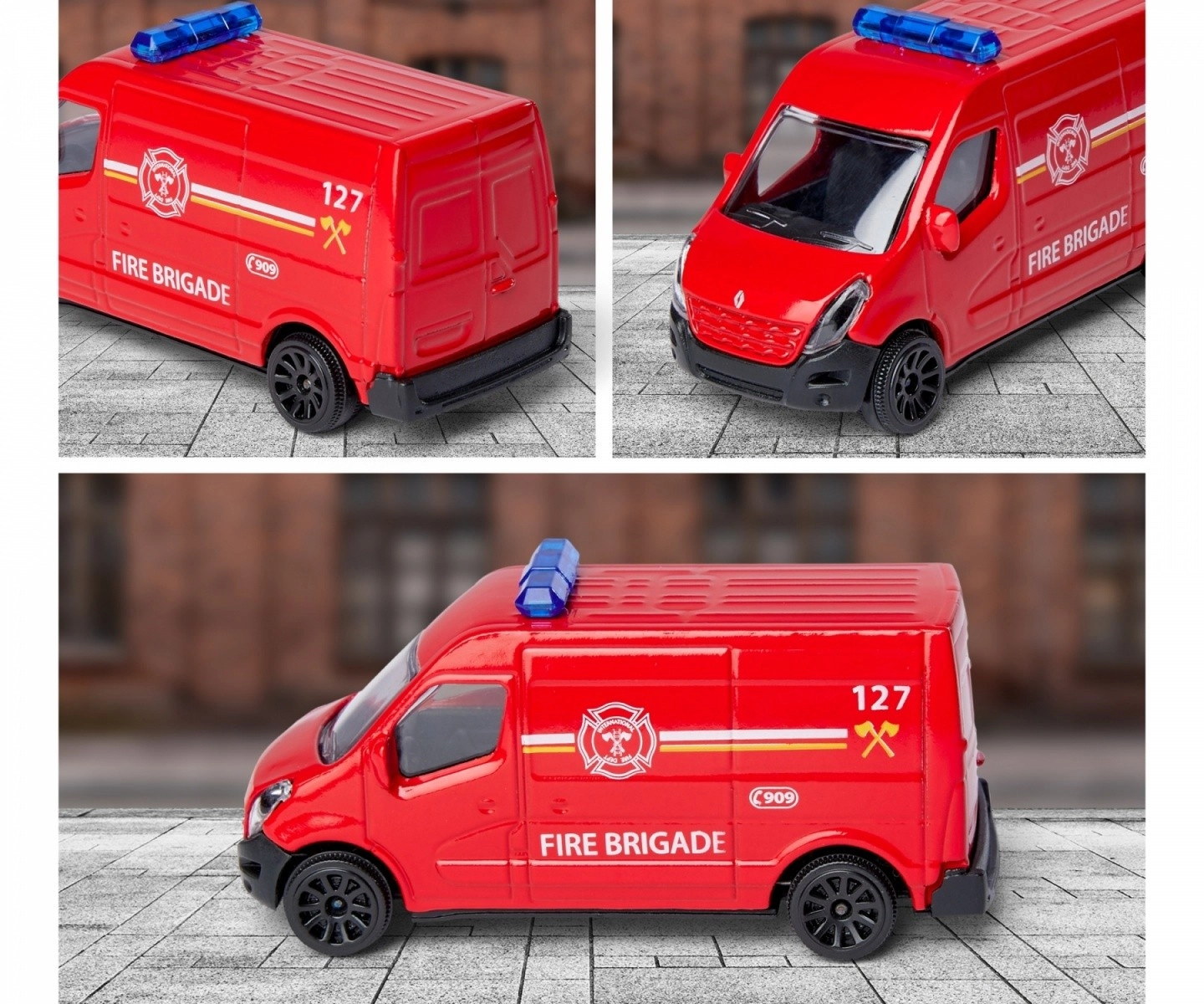 Komplekt sisaldab autentset metallist sõidukit Renault Masteri litsentsitud detailidega, mis sobib mängustsenaariumiteks nii maal kui õhus.