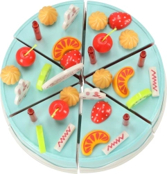 Kuus koogitükki on ühendatud takjapaelaga – lapsed lõikavad need hõlpsalt plastnoaga lahti ja panevad uuesti kokku. Ideaalne peenmotoorika treenimiseks ja realistseks mänguks.