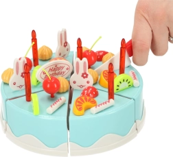 See värvikas sinise sünnipäevakoogiga komplekt on ideaalne peomängudeks ja lastesöögituppa. Kook koosneb 6 tükist, mis on ühendatud takjapaelaga, nii et lapsed saavad seda komplektis oleva plastnoaga lõigata, ümber paigutada ja uuesti kaunistada. Rikas lisavarustus – küünaldest ja puuviljadest kuni armsate jänkude ja kirjani „Happy Birthday“ – toetab loovust ja fantaasia arengut.
