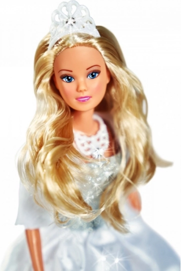 Elegantne STEFFI LOVE nukk valges sätendavas kleidis koos tiaara ja kaelakeega, kõrgus 29 cm. Täiuslik printsessimängudeks, kvaliteetne teostus ja kaunis kingitusepakend.