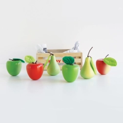 Naudi päeva „turul” selle kauni LE TOY VAN puidust kastiga, mis on täis puuvilju. Komplektis on kaks punast ja kaks rohelist õuna ning kaks rohelist pirni vildist lehtedega. Mänguasi on valmistatud jätkusuutlikust puidust, värvitud mittetoksiliste veepõhiste värvidega ning sobib suurepäraselt väikestesse kätesse. Soodustab kujutlusmängu, peenmotoorikat ja tervisliku toitumise tundmaõppimist.