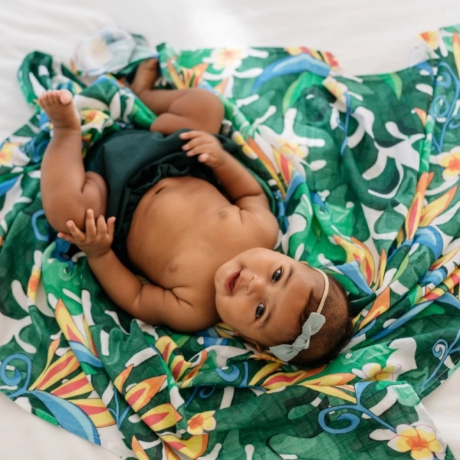 Kerge ja õhuline bambuse-puuvillane musliinmähkmetekk Tommy Lise mustriga Lush Garden on beebi nahale õrn, hingav, jahutav ja meeldiv puudutusele. Suure 120 × 120 cm mõõduga sobib see tekiks, mähkimislinale ja kaitseks imetamisel.