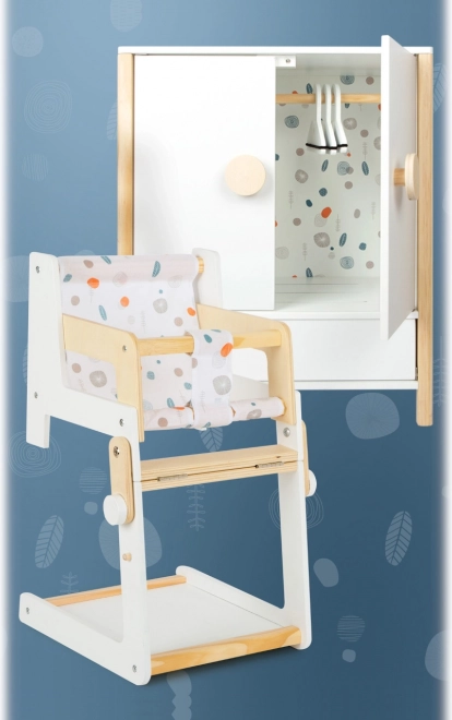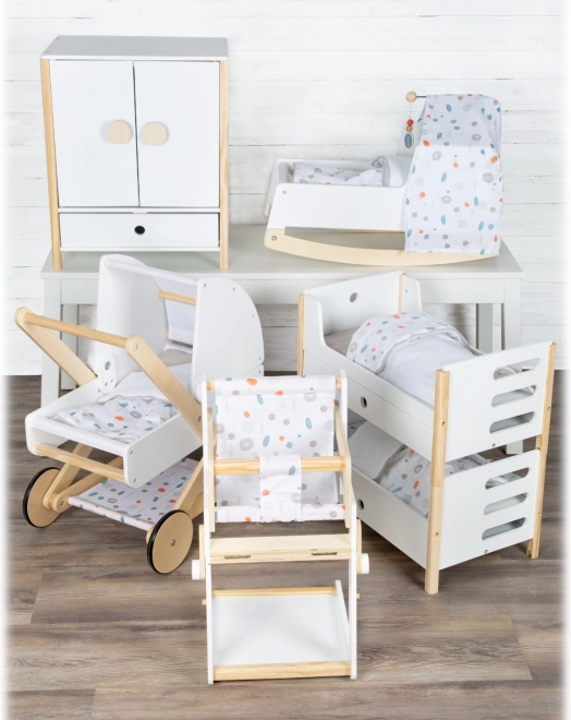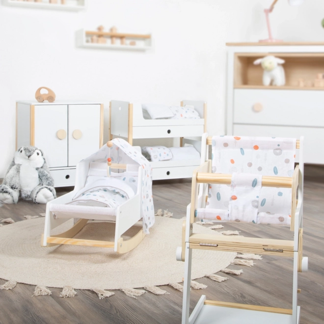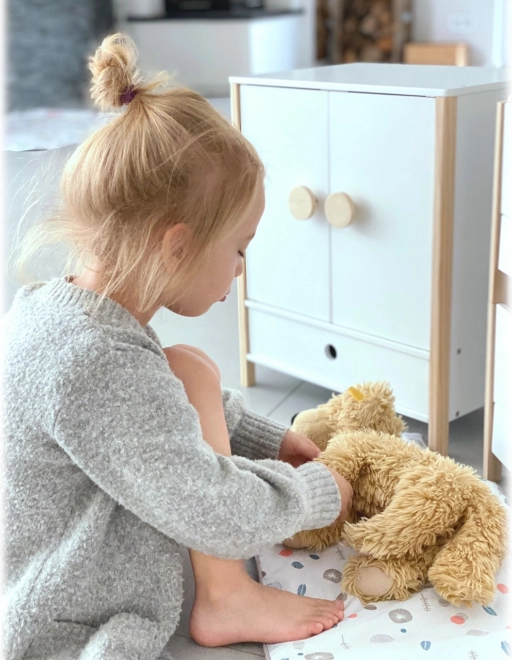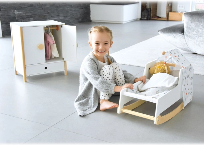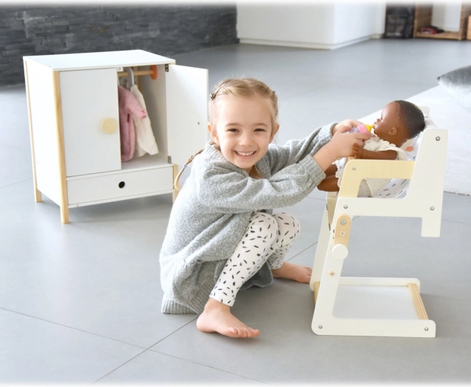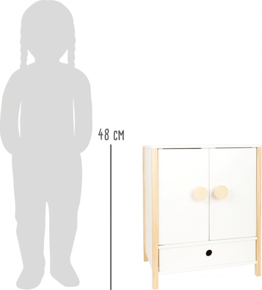 Kestlik puidust konstruktsioon, stabiilne viimistlus ja turvalised, ümardatud servad tagavad mugava ja turvalise mängu. Kapp toetab iseseisvust, korraharjumusi ning arendab kujutlusvõimet nukkude eest hoolitsemise mängudes.