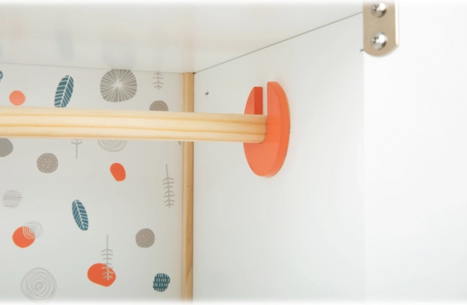 See stiilne Little Buttoni nuku riidekapp ühendab puhtad jooned, looduslikud materjalid ja funktsionaalse siselahenduse. Lastel on kõik käeulatuses: riidepuutoru koos riidepuudega kleitide riputamiseks, eemaldatavad riiulid aksessuaaridele ning avar sahtel pisiasjadele. Minimalistlik teostus mahedate toonidega sobitub loomulikult modernsesse interjööri.