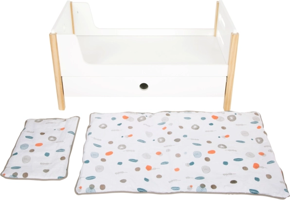 Voodite all olevad sahtlid hoiavad tarvikud korras, samas kui sooneutraalne voodipesu ja oversized‑tekid sobivad nukkudele kuni 46 cm.