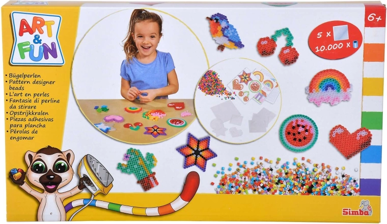 Avasta pikselkunsti maailm SIMBA ART & FUN triikimispärlite komplektiga. Pakendis on 10 000 värvilist pärlit ja 5 korduvkasutatavat alusplaati, millele saad laduda meelepäraseid motiive. Kui katad kujundi küpsetuspaberiga ja täiskasvanu triigib selle üle, ühinevad pärlid ja kõvastuvad püsivaks dekoratsiooniks.