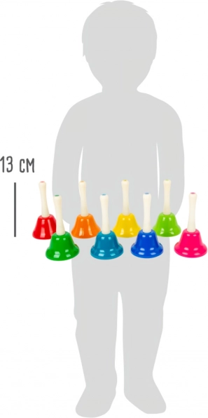 Avastage muusika võlu selle kaheksa kellaga komplektiga, mis on mitte ainult kaunilt värviline, vaid ka funktsionaalselt tagab iga tooni vahemikus C kuni H. Lapsed saavad õppida mängima erinevaid viise, nagu „Taluperemees Donald”, „Kellukesed” ja „Sära, sära, täheke”. Komplekt toetab muusikakasvatust, rütmitunnet ja peenmotoorikat. Ideaalne lasteaeda ja algklassidesse.