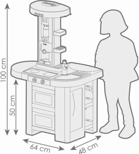 Tere tulemast kokkamismängude maailma Smoby Studio Tech Edition köögiga. See kompaktne ja stabiilne köök pakub avarat mänguala, mis võimaldab lastel avastada loovust toiduvalmistamises igast küljest.
