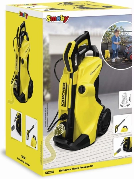 Smoby laste kõrgsurvepesur on armastatud mudeli KÄRCHER K 4 detailne koopia. See pakub ohutut veepihustamist kahe surveastmega, kui see on ühendatud tavalise aiaüüsi külge. Tänu väiksesed kaalule ja sujuvalt veerevatele ratastele saavad lapsed selle hõlpsalt kõikjale viia.