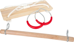 See multifunktsionaalne komplekt väikestele akrobaatidele toob aktiivse liikumise ja rõõmu nii aeda kui ka lastetuppa. Klassikaline puidust kiik, ripprööbas ja võimlemisrõngad mugavate plastist käepidemetega arendavad koordinatsiooni, jõudu ja tasakaalu.