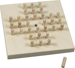 Detoa puidust soolomäng pakub nutikat meelelahutust kompaktses vormis. Mäng algab keskmise nupu eemaldamisega ja jätkub naabernuppude ülehüppamisega horisontaalselt või vertikaalselt. Iga ülehüpatud nupp eemaldatakse lauast – planeeri käike ette ja püüa jätta lõppu ainult üks.