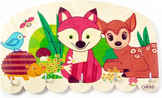 Disainitud puidust seinanagi metsloomade motiiviga võtmete, ehete ja pisitarvete jaoks. Sisaldab 5 metallist konksu, on käsitsi maalitud ja toodetud Saksamaal. Lihtne paigaldus tänu eelpuuritud avadele.