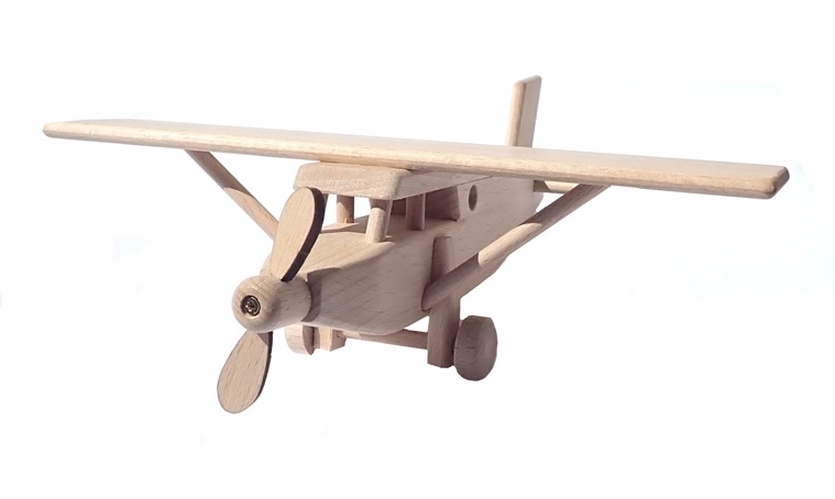 See aus puidust lennukimudel on valmistatud täispöögist ja jäetud loodusliku väljanägemisega – üksnes vahaga töödeldud ja poleeritud, ilma keemilise töötlemise ja värvideta. Tänu täpsele teostusele ja siledale pinnale sobitub see hästi lapse kätte ning toetab kujutlusvõime ja peenmotoorika arengut.