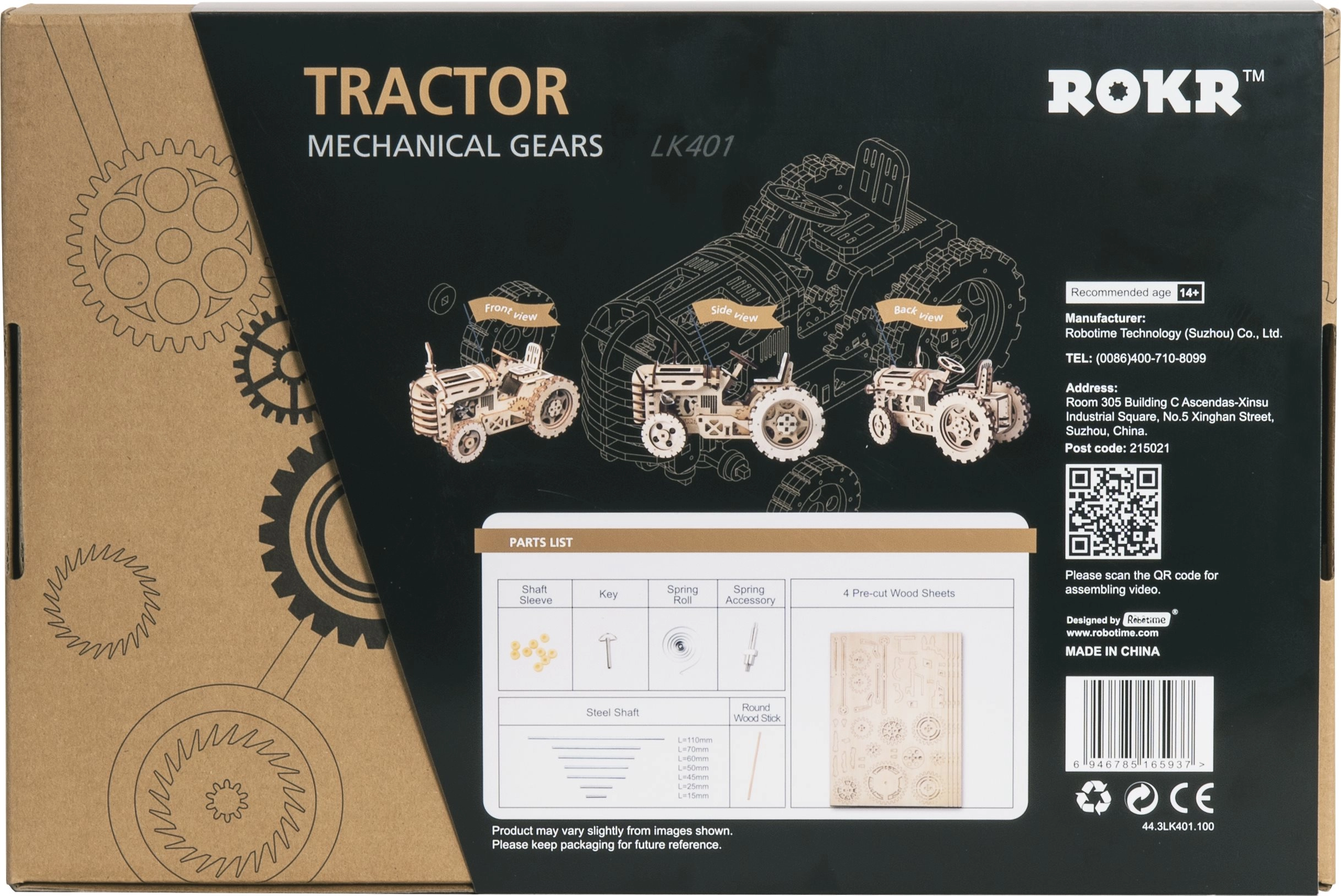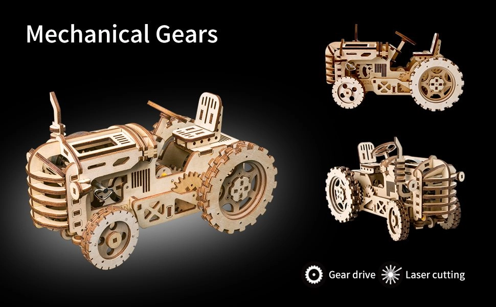 ROBOTIME Rokr toob teieni kaasahaarava 3D puidust traktoripusle realistlike detailidega. See mehaaniline mudel ei vaja patareisid – keerake mootorit võtmega ja vaadake, kuidas see ellu ärkab. Tänu rooli pööramisele saate muuta esirataste liikumissuunda, mis lisab interaktiivsust.