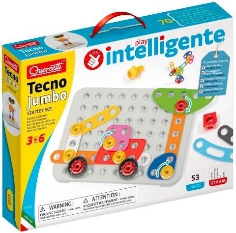 Quercetti Tecno Jumbo on suurepärane peenmotoorika, loovuse ja fantaasia arendamiseks lastele, kes armastavad õppida uusi asju.