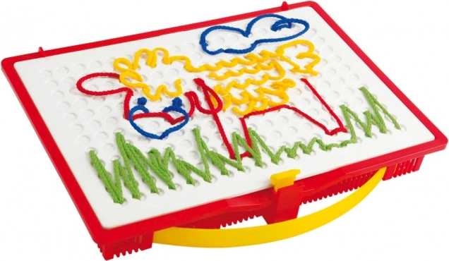 Avastage loova mängu võlu Quercetti Filò tikkimiskomplektiga, mis toetab laste fantaasiat ja peenmotoorikat. Spetsiaalsete pliiatsite abil saavad lapsed luua erinevaid pilte, lükates värvilisi nööre mängulaua avadesse, mis pakub rõõmu ja lõbu.