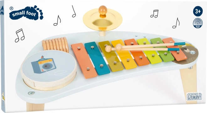 Small foot Groovy Beats muusikaline lauatase on läbimõeldud komplekt esimesteks muusikasammudeks. Tugev puidust konstruktsioon ja kolm stabiilset jalga võimaldavad lastel turvaliselt avastada erinevaid helisid – alates ksülofoni meloodilistest toonidest ja selgest taldrikukõlinast kuni eemaldatava trummi biitideni. Värvikoodiga klahvid lihtsustavad õppimist ja toetavad kiireid eduelamusi.