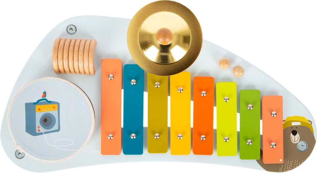 Ksülofon, taldrik, kõrin ja eemaldatav trumm moodustavad kompaktse komplekti, mis julgustab lapsi avastama erinevaid helisid ja rütme.