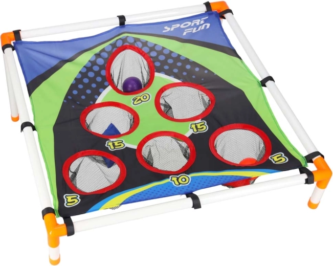 Lõbus viskemäng lastele, mis arendab käe-silma koordinatsiooni, täpsust ja kiireid reaktsioone. Kerge raam kaldu märklauaga ja nummerdatud avadega pakub eri punktiväljakutseid. Sobib nii aeda kui ka siseruumi, lihtne kokku panna ja mugav kaasas kanda. Komplektis on viskekotikesed ja plastpallid.