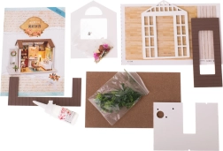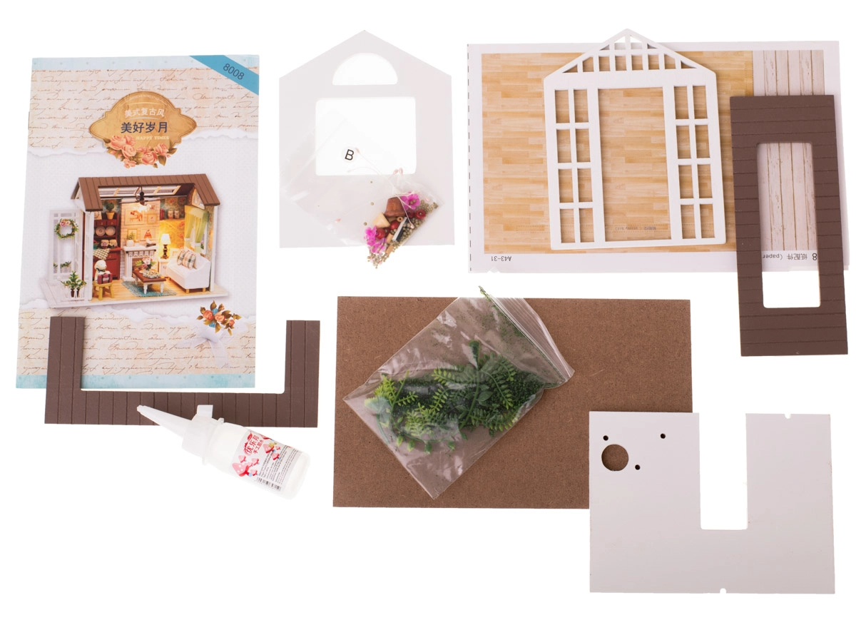 Komplekt sisaldab kõike vajalikku eluruumi ehitamiseks ja sisustamiseks, sh liimi ja üksikasjalikke pildijuhiseid. LED-valgustus, mis kuulub komplekti ja töötab patareidel (2× AAA 1,5 V ja 3× 1,5 V LR54 – patareid ei kuulu komplekti), loob kauni üldise meeleolu.