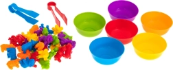 Kuus eri värvi kaussi ja 36 figuuri võimaldavad lastel sorteerida, liita ja võrrelda – ideaalne esimeste matemaatikaülesannete jaoks.