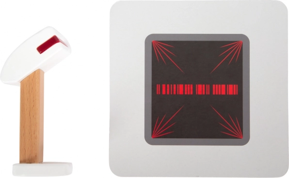 Komplektis on tootekaardid, triipkoodilugeja, rebittav tšekirull, skanner ja 15 kahepoolset puidust münti. Puidu ja plasti kombinatsioon tagab vastupidavuse ning meeldiva põhjamaise disaini nähtava puidusüüga. Kassa toetab arvutamisoskuse õppimist, kujutlusvõime arengut ja sotsiaalset suhtlust poe-mängu ajal.