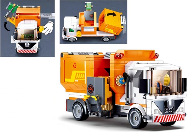 Komplekti kuuluvad töömehe minifiguur, prügikast ja läbimõeldud detailid veokil, sh laadimismehhanism “prügiveoks”. Tänu ühilduvusele LEGO, Cobi, Mega Bloks ja teiste brändidega saad oma linna hõlpsalt laiendada ja luua oma lugusid.