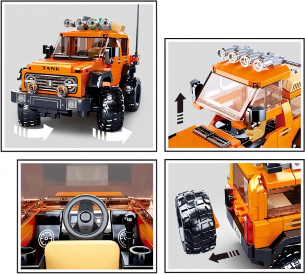 Avasta ehitusrõõm Ameerika maasturite poolt inspireeritud mudeliga. Oranži‑mustas värvilahenduses mudel massiivsete rataste, katusereelingu ja detailse esivõrega sobib nii põnevateks stseenideks kui ka riiulile eksponeerimiseks. Tugev ABS-plast muudab komplekti vastupidavaks ja ohutuks.