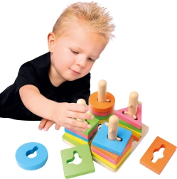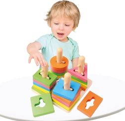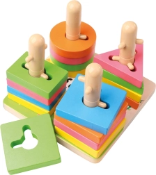 See kvaliteetne puidust lülimismäng sisaldab 21 värvilist tükki ja stabiilset alust tappidega. Tänu nutikalt kujundatud avadele ja postidele harjutavad lapsed kujundite sobitamist, värvide eristamist ja ruumitaju. Kompaktsed mõõtmed 15 × 11,5 × 15 cm võimaldavad lihtsat hoiustamist ning mängimist laual või matil.