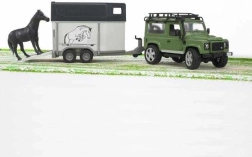 Realistlik maastikuauto LAND ROVER DEFENDER koos hobuveokiga haagisega mõõtkavas 1:16 rõõmustab nii väikeseid juhte kui ka loomade sõpru. Pakub avatavaid uksi ja kapotti, vedrustusega sildu ning toimivat roolimist pikendatud rooliga. Kvaliteetne teostus, valmistatud Saksamaal, sobib lastele alates 3. eluaastast.