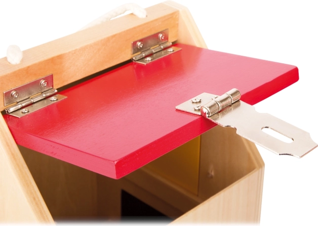 Maja on valmistatud kvaliteetsest puidust koos vastupidavate metallosadega, et taluda ka intensiivset kasutust. Kompaktsete mõõtude ja praktilise käepideme tõttu on seda lihtne kaasas kanda – ideaalne reisidele, lasteaeda ja lastetuppa. Värvilised elemendid kutsuvad avastama ning toetavad värvide äratundmist.