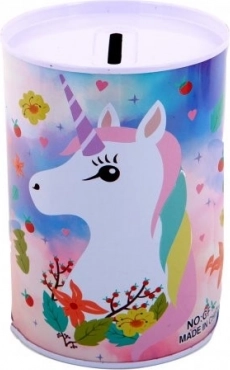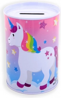 Metallist ükssarviku motiiviga hoiukass on mitte ainult praktiline abiline säästmiseks, vaid ka ilus dekoratiivne element lastetoas. Selle värvilised ükssarvikute, vikerkaare ja tähtede illustratsioonid rõõmustavad iga last.