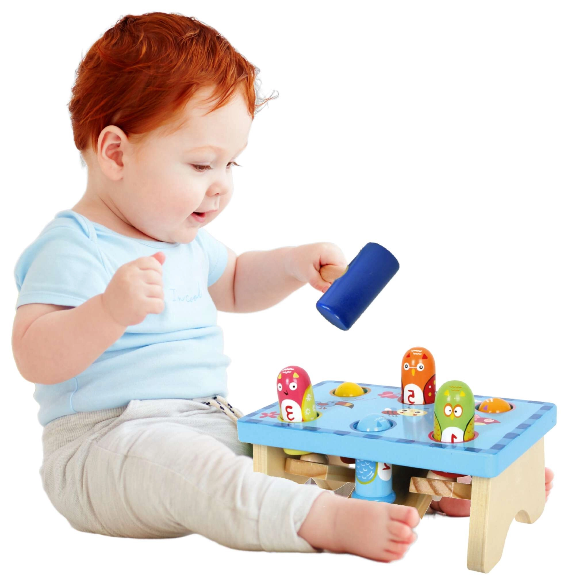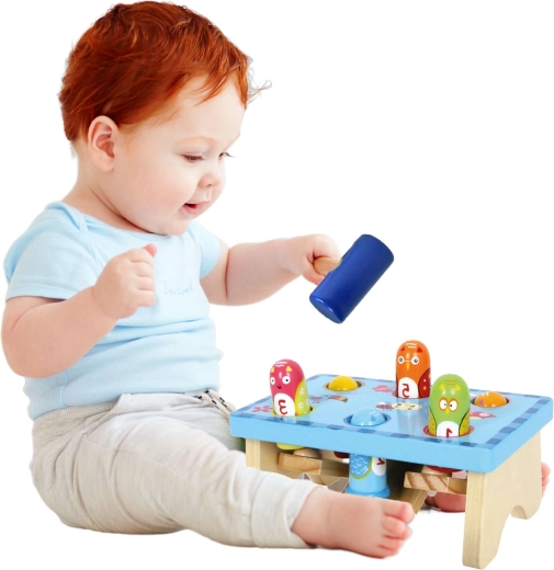 Tänu tugevatele materjalidele ja ergonoomilisele haamrile harjutavad lapsed peenmotoorikat, liigutuste koordineerimist ja kannatlikkust. Värvilised ja nummerdatud pulgad aitavad värvide eristamisel ja loendamisel, nii et mäng seostub loomulikult õppimisega.