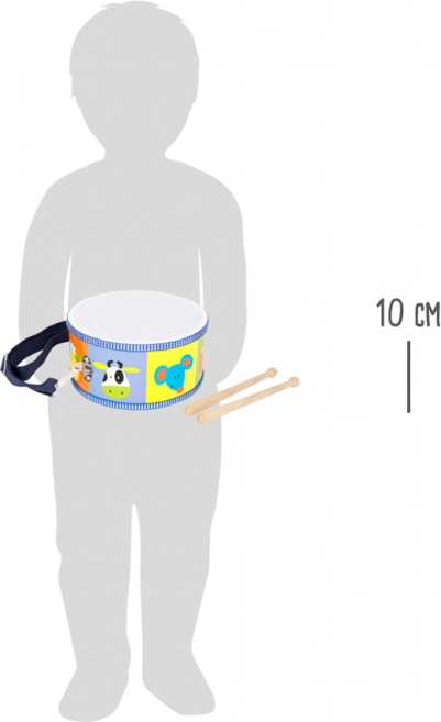 Värviline Small Footi loomamotiiviga laste trumm on ideaalne laste rütmitaju ja koordinatsiooni arendamiseks. Komplektis on kaks puidust pulka ja reguleeritav rihm lihtsaks kandmiseks.