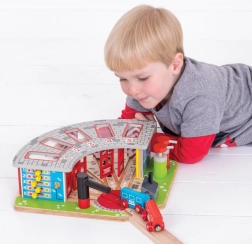 Puidust depoo on mõeldud viiele erinevale rongile ning sisaldab toimivat pöördsilda, mis võimaldab rongidel hõlpsalt eri garaažide vahel liikuda. Süsteemis on avatavad uksed ja tankla, mis lisavad mängule realistlikkust.