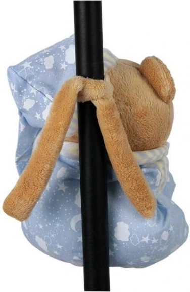 Karu kannab sinist pidžaamat tähekeste ja kuumotiiviga, mis loob rahustava meeleolu ning sobib ideaalselt lastetoa kaaslaseks.