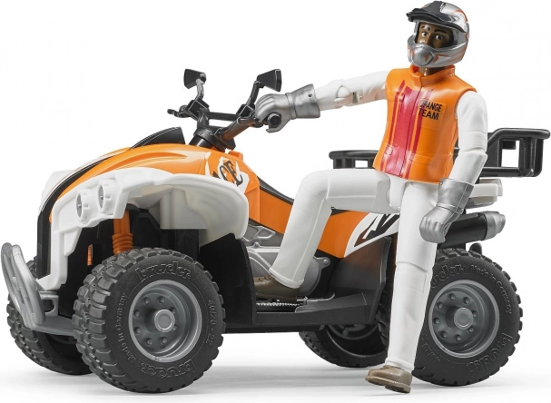 Tegus komplekt väikestele seiklejatele: plastist neljarattaline ATV mõõtkavas 1:16 koos detailse juhi figuuriga. Pakub vedrustusega sildu, pehmeid mustriga kummirehve ja liikuvaid rattaid sujuvaks sõiduks. Lisatud on eemaldatav pagasiruum, tööriistahoidjad ning figuur liikuvate liigestega. Valmistatud Saksamaal kvaliteetsest ABS-plastist.
