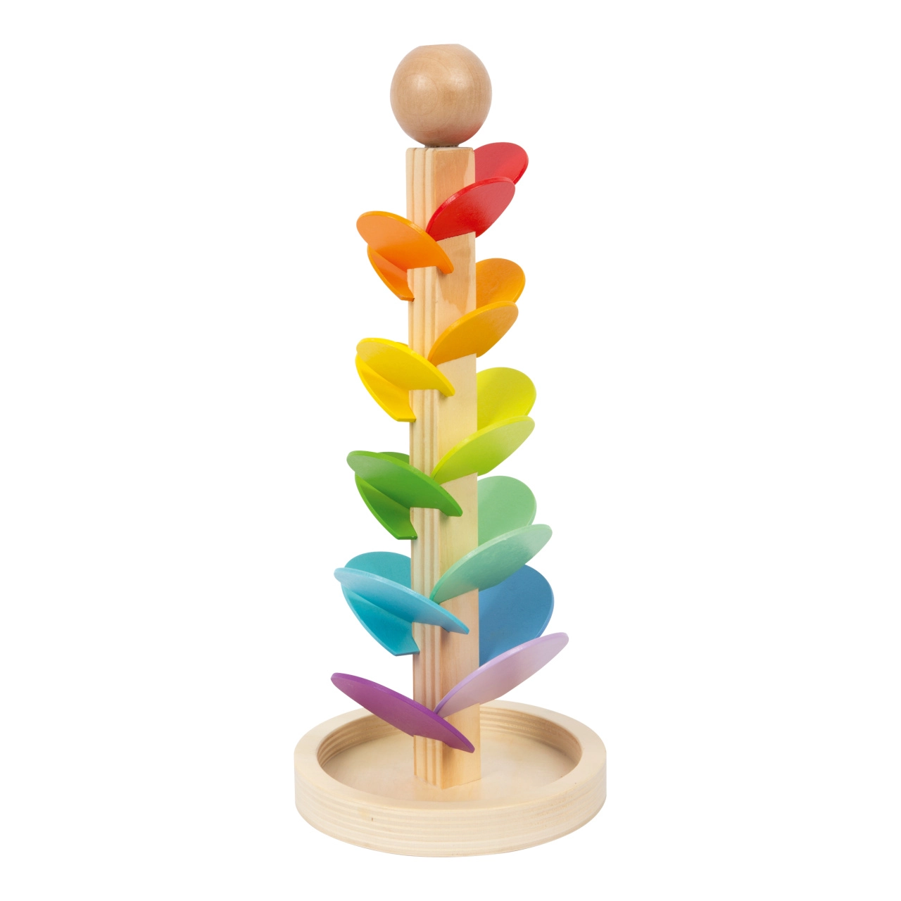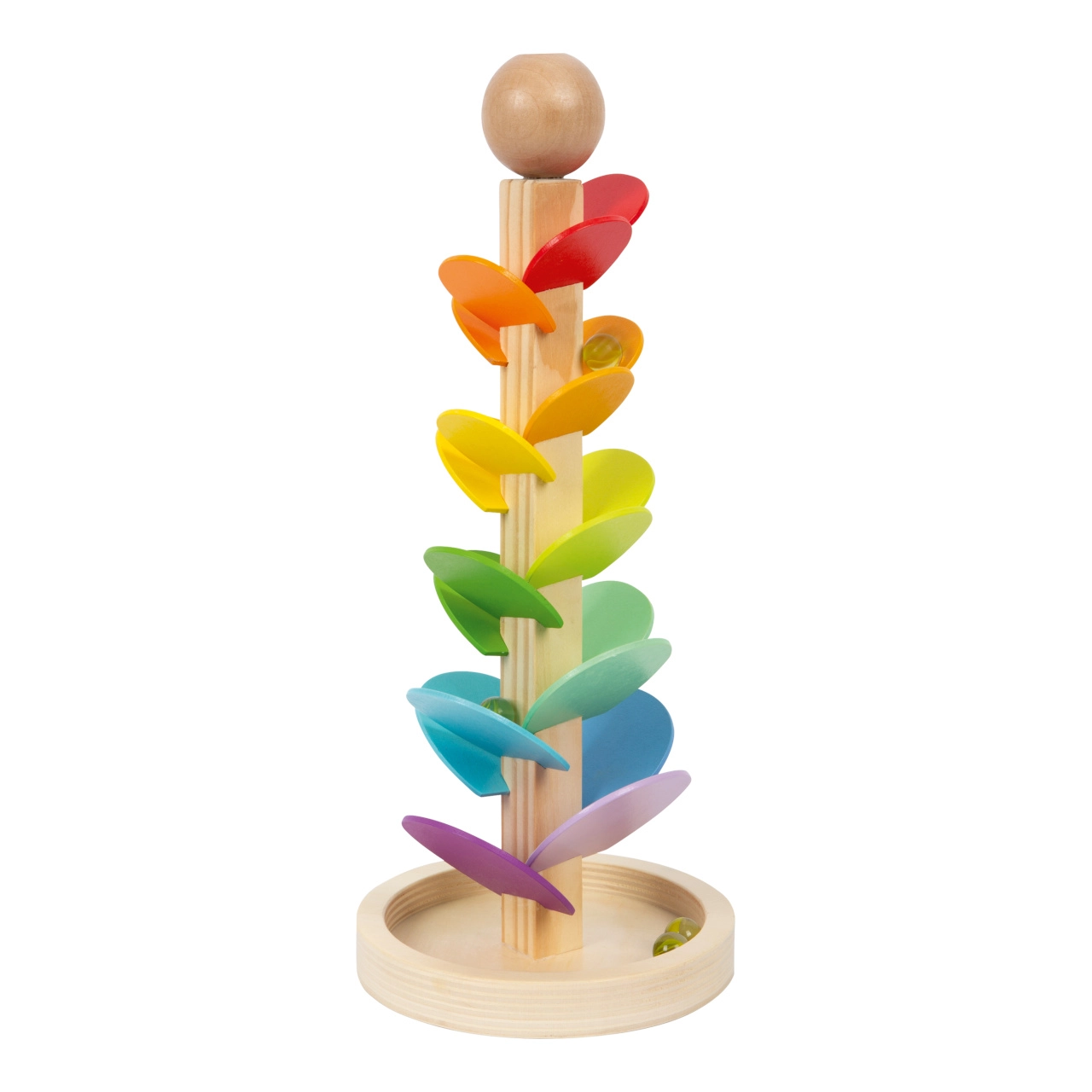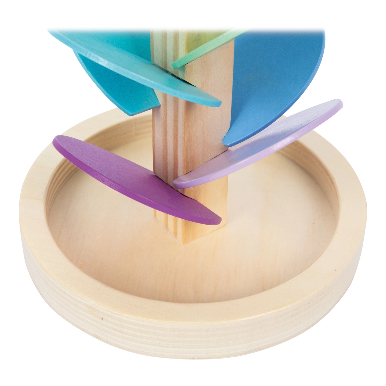 Puidust Small Foot kuulirada muudab iga kuuli laskmise väikeseks kontserdiks. Kui klaaskuul libiseb mööda värvilisi lehti, tekivad järjest kõrgemad kuni madalamad toonid, mis ergutavad kuulmistaju ning pakuvad lastele nii rahustavat kui ka lõbusat kogemust. Tugev puidust konstruktsioon stabiilse aluse ja sileda pinnaga on meeldiv katsuda ja valmis igapäevaseks mänguks.