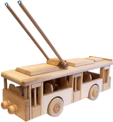 Trollibuss on valmistatud kvaliteetsest kõvast pöögipuidust, sileda pinna ja ümardatud servadega turvaliseks mänguks.