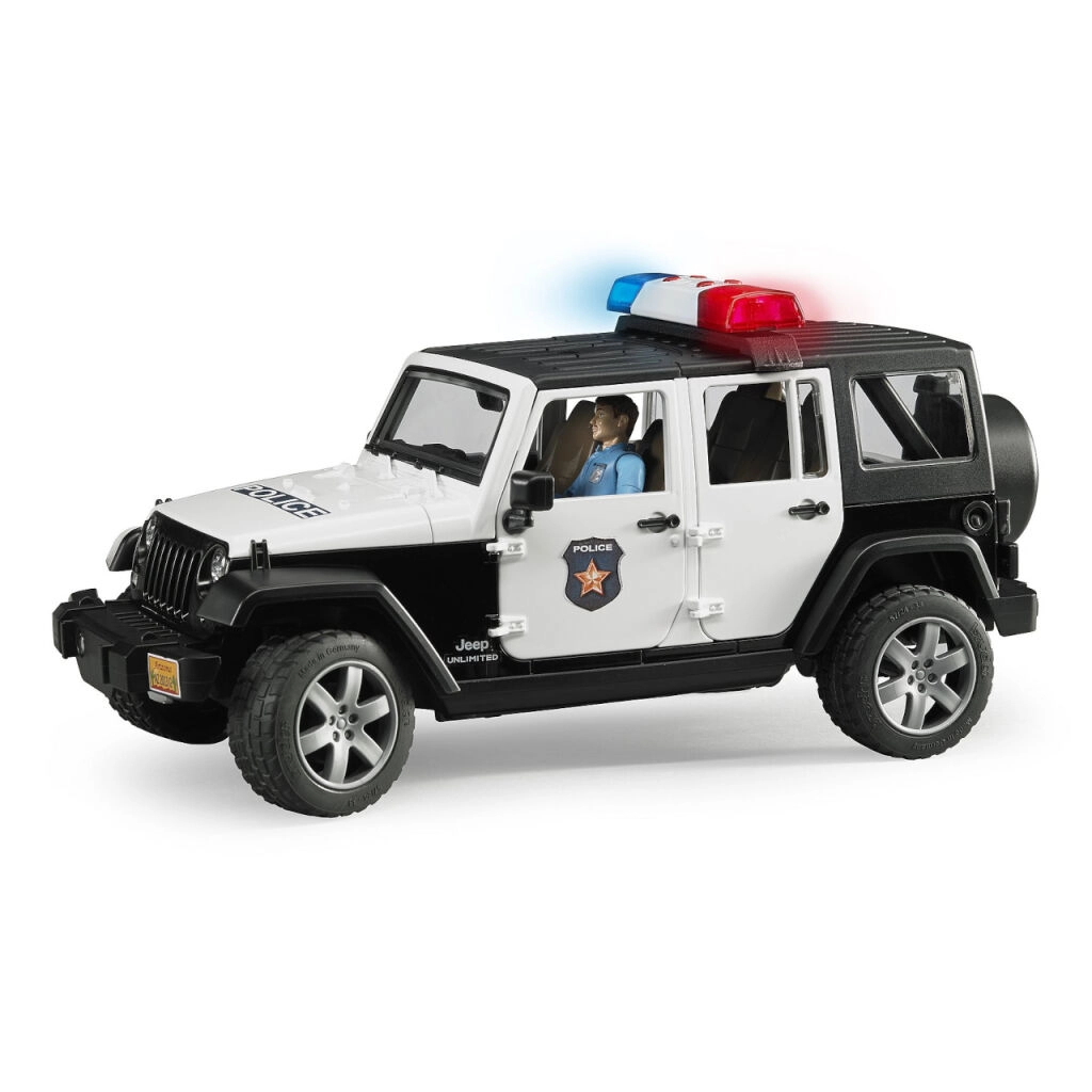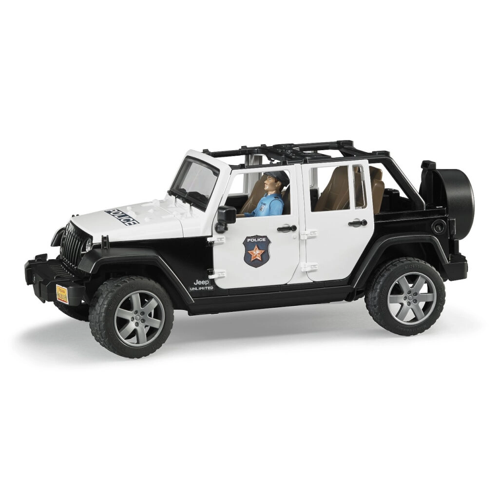 BRUDERi politsei Jeep Wrangler Rubicon on tõetruu koopia pärisautost mõõtkavas 1:16. Lapsi paeluvad detailne salong ja mootoriruum, kuhu pääseb tänu avatavale kapotile. Mudel ühildub BRUDER Bworldi figuuride ja tarvikutega ning mahutab kuni 4 figuuri.