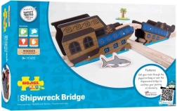 Bigjigs Rail laevavraki sild lisab sinu rongimaailmale seiklusliku hõngu. Kaks tugevat osa saab lihtsalt kokku panna muljet avaldavaks ülekäiguks või läbipääsuks, nii et rongid saavad sõita üle ja läbi kaunistatud vraki. Piraadi- ja merelainete teema innustab looma lugusid ja pakub pikki mängutunde.