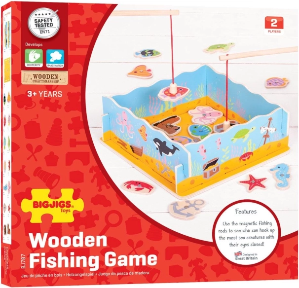 Magnetiline kalapüük BIGJIGS TOYS on ideaalne didaktiline mänguasi esimesteks kalapüügiõnnestumisteks. Värvikas „mere“ konstruktsioon kalade ja mereteemaliste motiividega julgustab korduvalt mängima, toetab keskendumist ja õppimist läbi mängu.