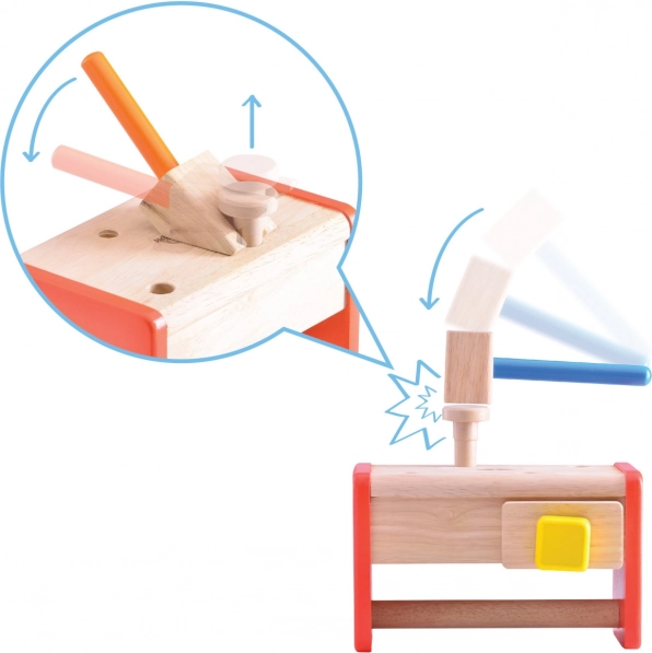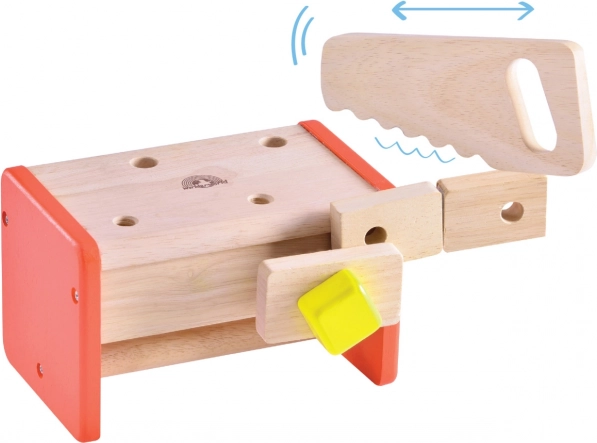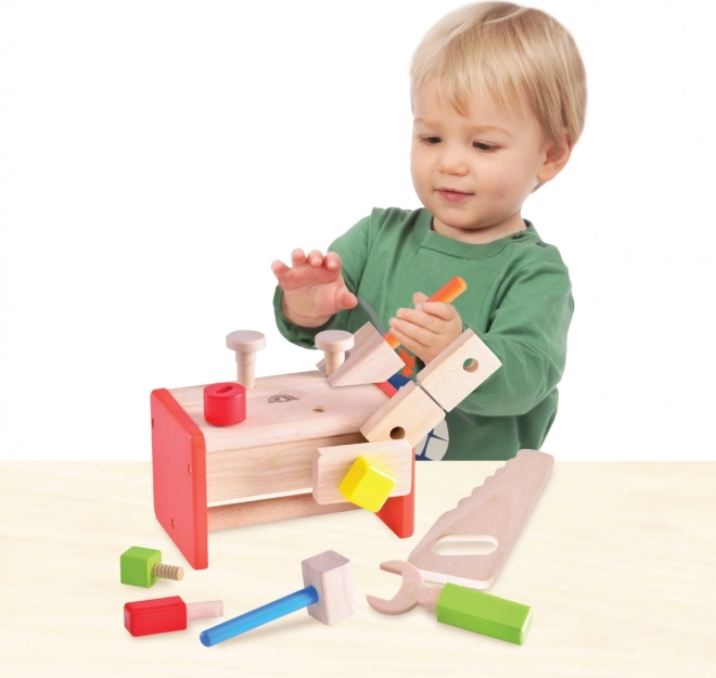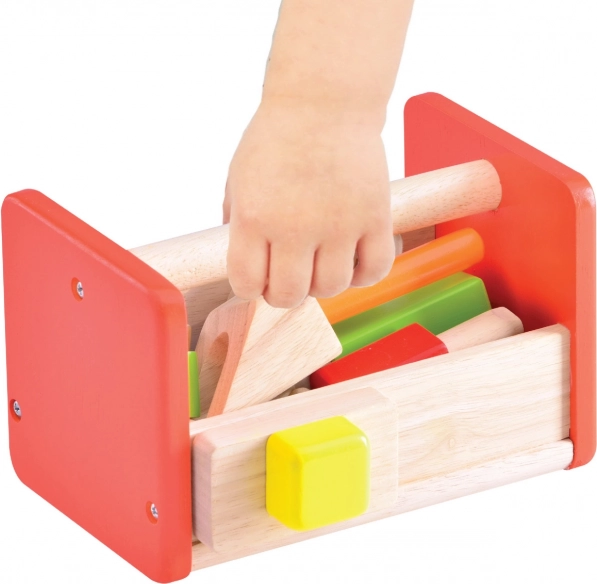 Komplekt on valmistatud vastupidavast täispuidust ja puitplastist, mis tagab pika kasutusea ja ohutuse mängimisel. Loodusliku ilme ja erksate värvide atraktiivne kooslus köidab iga lapse tähelepanu. Lapsed õpivad tööriistu eesmärgi järgi sorteerima ning kompaktne ehitus aitab säästa ruumi.
