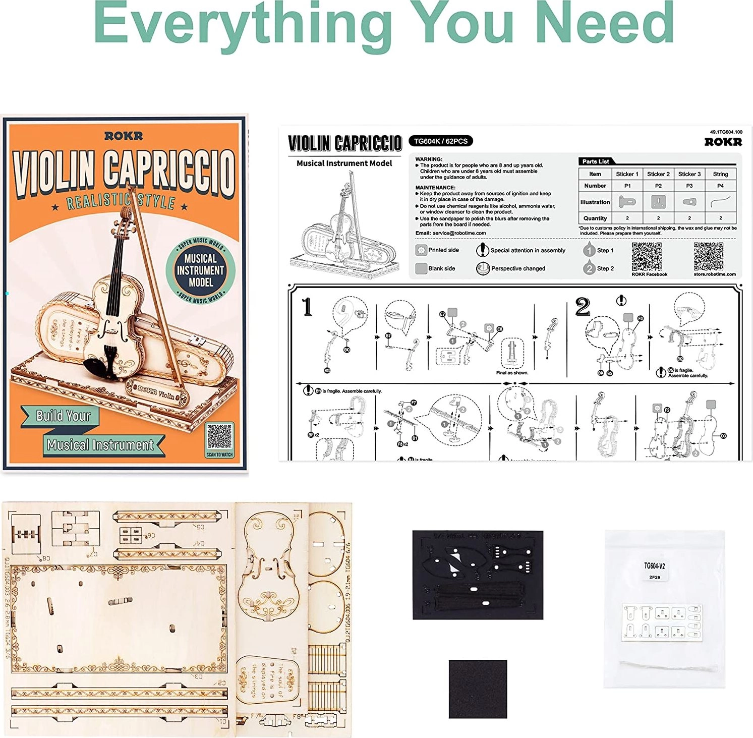 Mudel on mõeldud eksponeerimiseks, ei ole interaktiivne ega sisalda liikuvaid osi. Kokkupanek on lihtne ja sobib ka algajatele – tänu selgele, üksikasjalikule juhendile ja kvaliteetsetele väljalõigetele. Suurepärane kingitus lastele alates 8. eluaastast, muusikasõpradele ja puidust mudelite kogujaile.