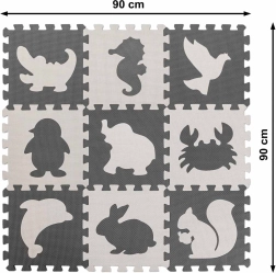 9 tükki mõõduga 30 × 30 cm saab kokku panna 85 × 85 cm matiks. Tükke saab kombineerida, kaasas kanda ja kiiresti kokku panna praktilisse kotikesse.