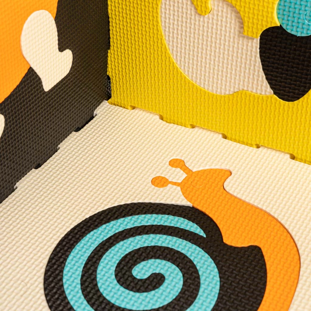 See suur vahumatt koosneb 9 tükist mõõtudega 30 × 30 × 1 cm, mis haakuvad omavahel kergesti. Kontrastsed värvid ja armsad loomamotiivid köidavad laste tähelepanu ning ergutavad nägemis- ja kompimismeelt. Eemaldatavad keskdetailid toimivad lihtsa sorteerijana – lapsed õpivad kujundeid ära tundma ja õigesse kohta sobitama.