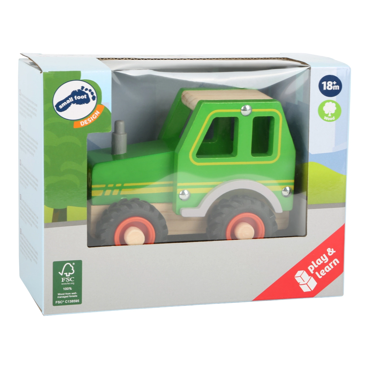 Small Foot puidust traktor toob taluelamuse otse lastetuppa. Vastupidav konstruktsioon tagab pika kasutusea ning on väikestele kätele hõlpsasti haaratav. Kummirehvid tagavad vaikse liikumise ja sobivad ka kõvadele põrandatele.