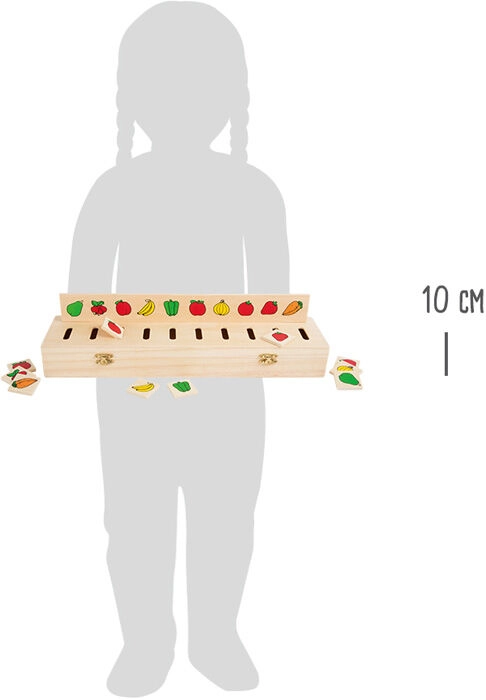 Avastage lõbus puidust sorteerimismäng, mis aitab lastel õppida ja mängida üheaegselt. Komplektis on 5 lükkelauda ja 50 sümbolitega ruudukest, mille abil harjutatakse värvide, kujude, loomade, puuviljade, riiete ja numbrite äratundmist. Tugev puidust konstruktsioon ja kahe päästiklukuga turvaliselt suletav kaas tagavad kõigi tükkide lihtsa hoiustamise ja korra pärast mängu.