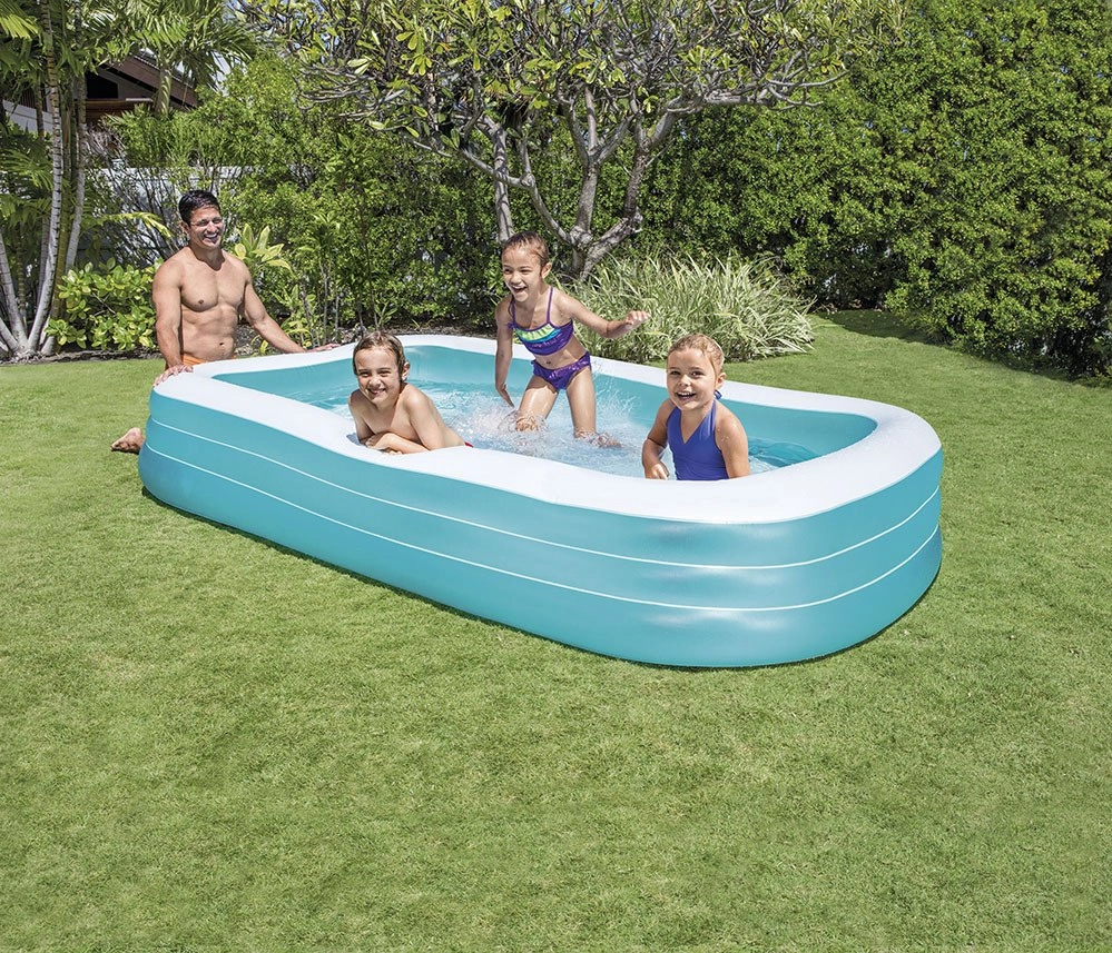Täispuhutav bassein INTEX Swim Center on ideaalne suvine lõbu perele või sõpradega. See pakub nii lastele kui täiskasvanutele värskendust ja lõõgastust tänu oma avaratele ja mugavatele proportsioonidele.