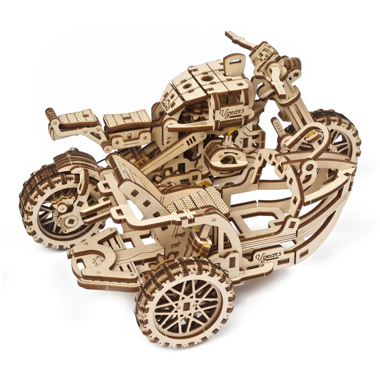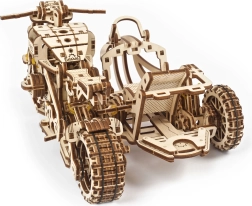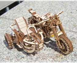 Valminud mootorratta külgkorviga mõõdud on umbes 22 × 16 × 11,5 cm ning see on efektne interjööriliselement. Üksikasjalik pildijuhend juhib ehitajat samm-sammult ning tagab meeldiva kogemuse ilma liimita.